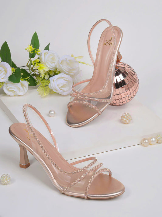 Women Copper Embellished Open Toe Flats