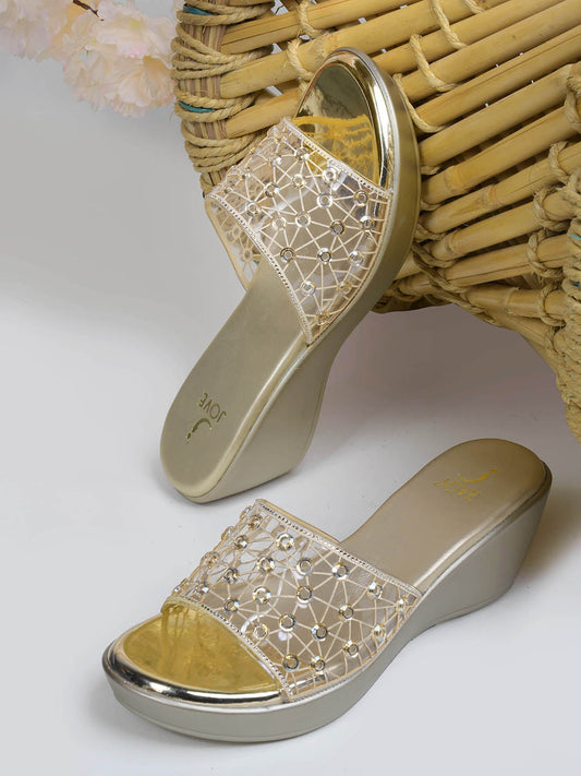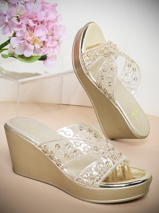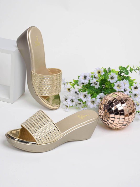 Women Gold Embellished Wedges