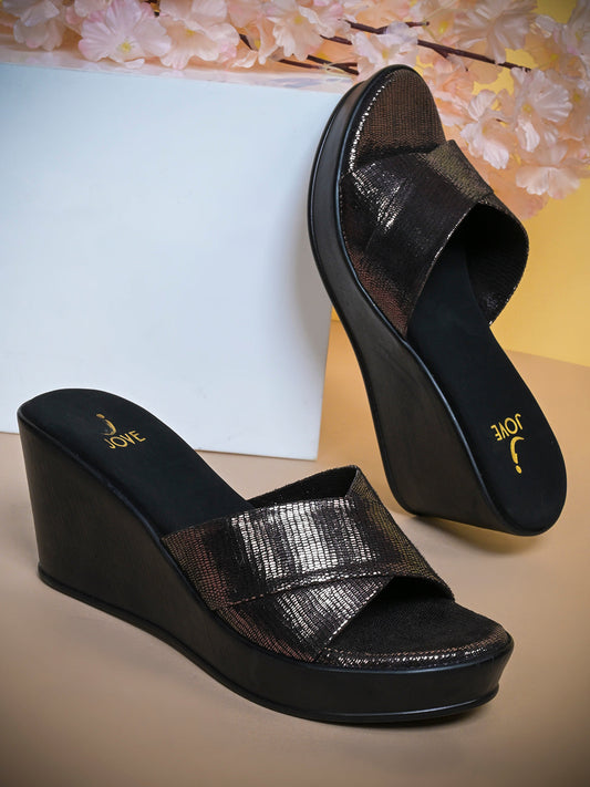Women Charcoal Grey Metallic Wedges