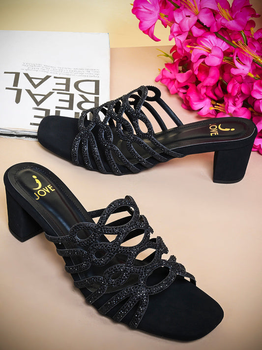 Women Black Embellished Sandals