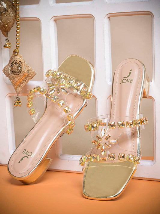 Women Gold Embellished Sandals
