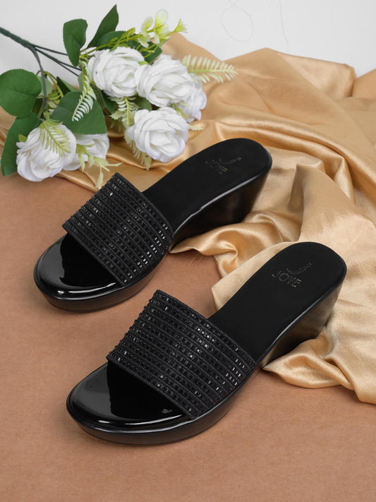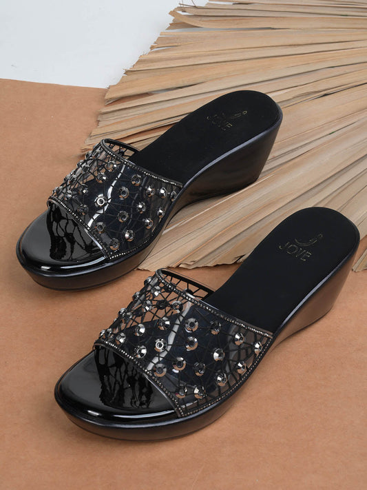 Women Black Embellished Wedges