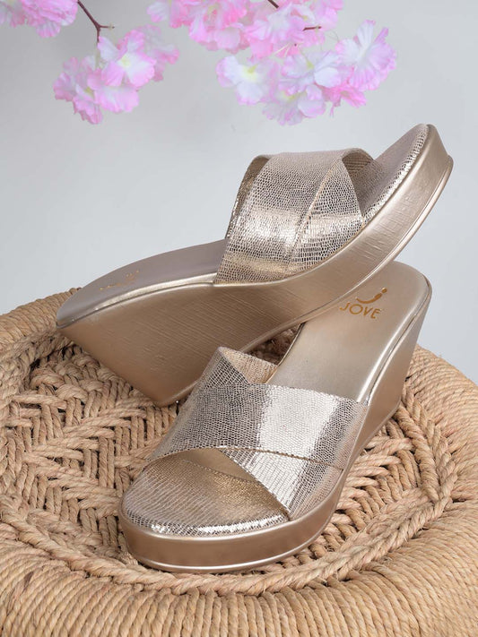 Women Gold Metallic Wedges
