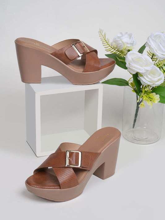 Women Tan Textured Sandals