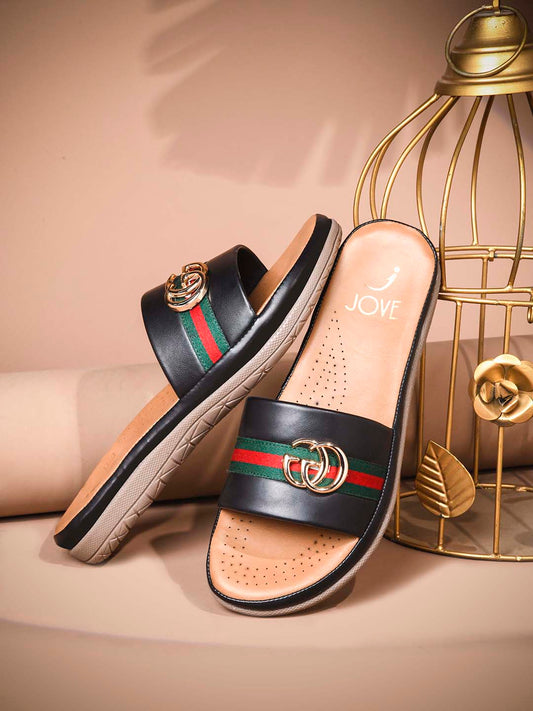 Women Black Embellished Sandals