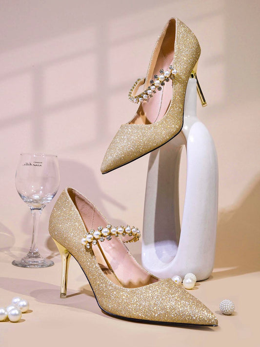 Women Gold Embellished Stilettos