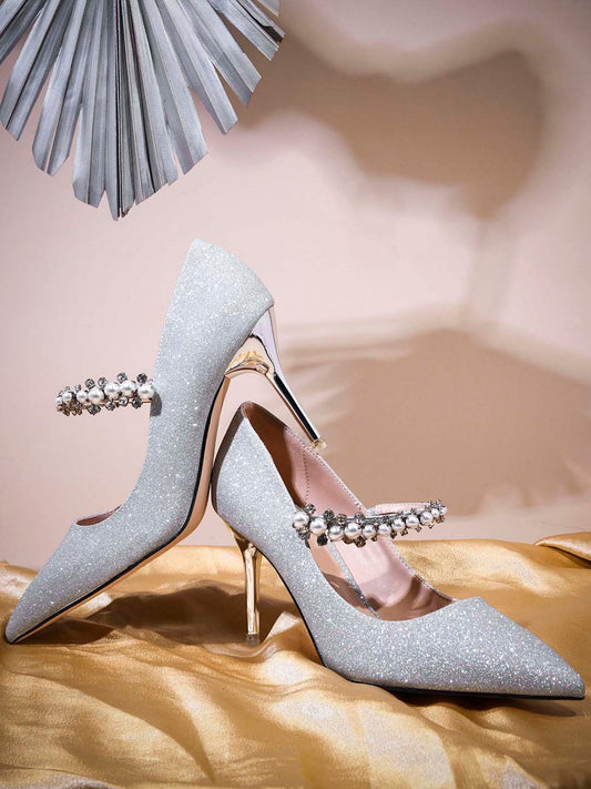 Women Silver Embellished Stilettos