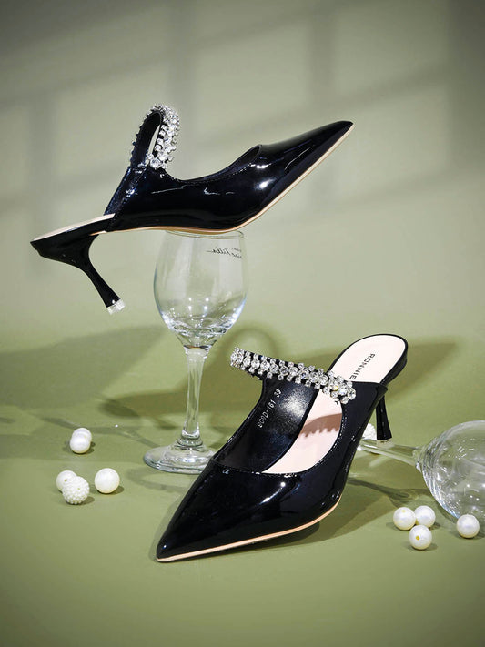 Women Black Solid Embellished Pumps