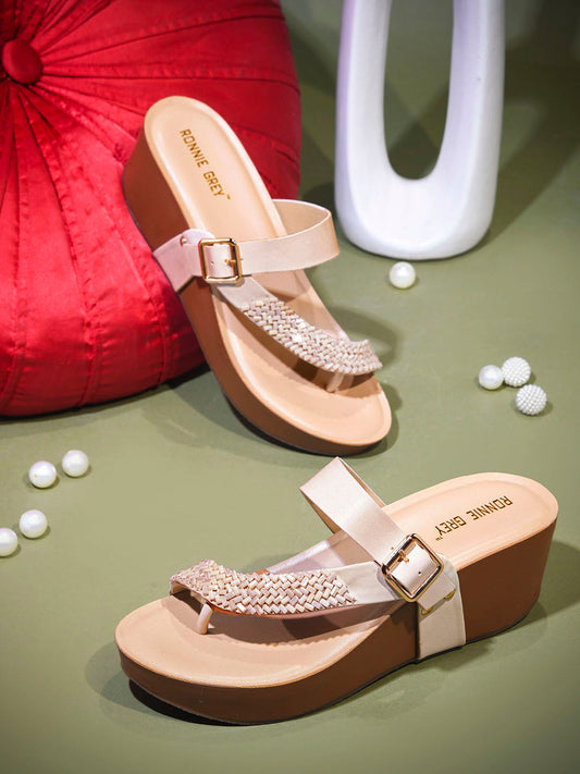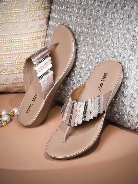 Women Nude Embellished Sandals