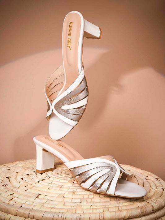Women Off White Textured Sandals