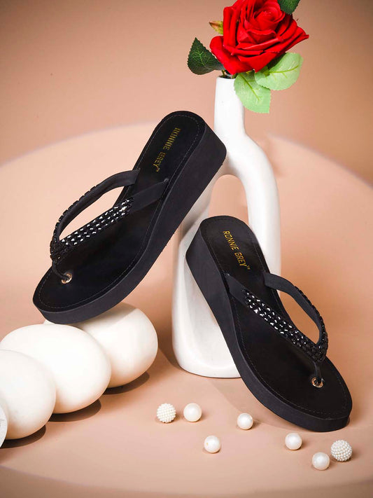 Women Black Embellished Wedges