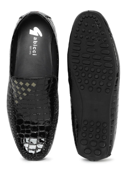 Men Black Animal Print Loafers