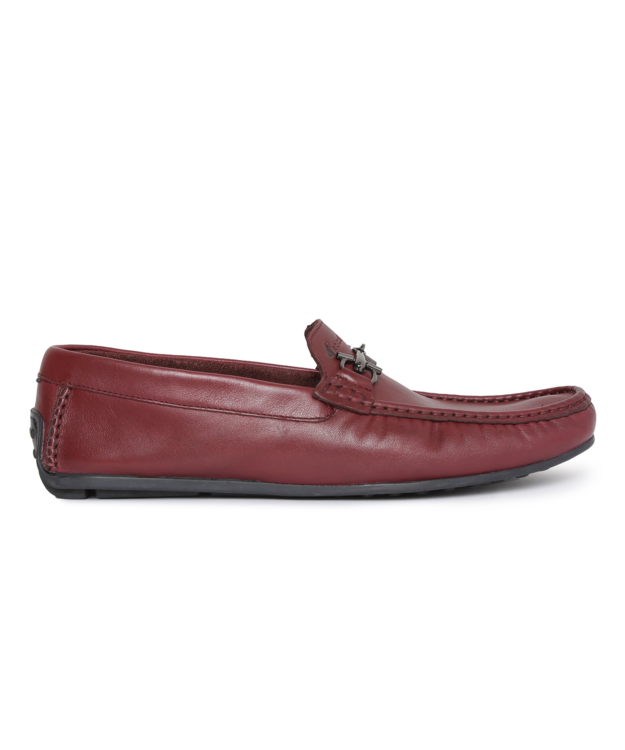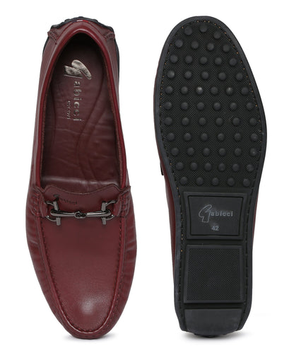 Men Burgundy Solid Loafers