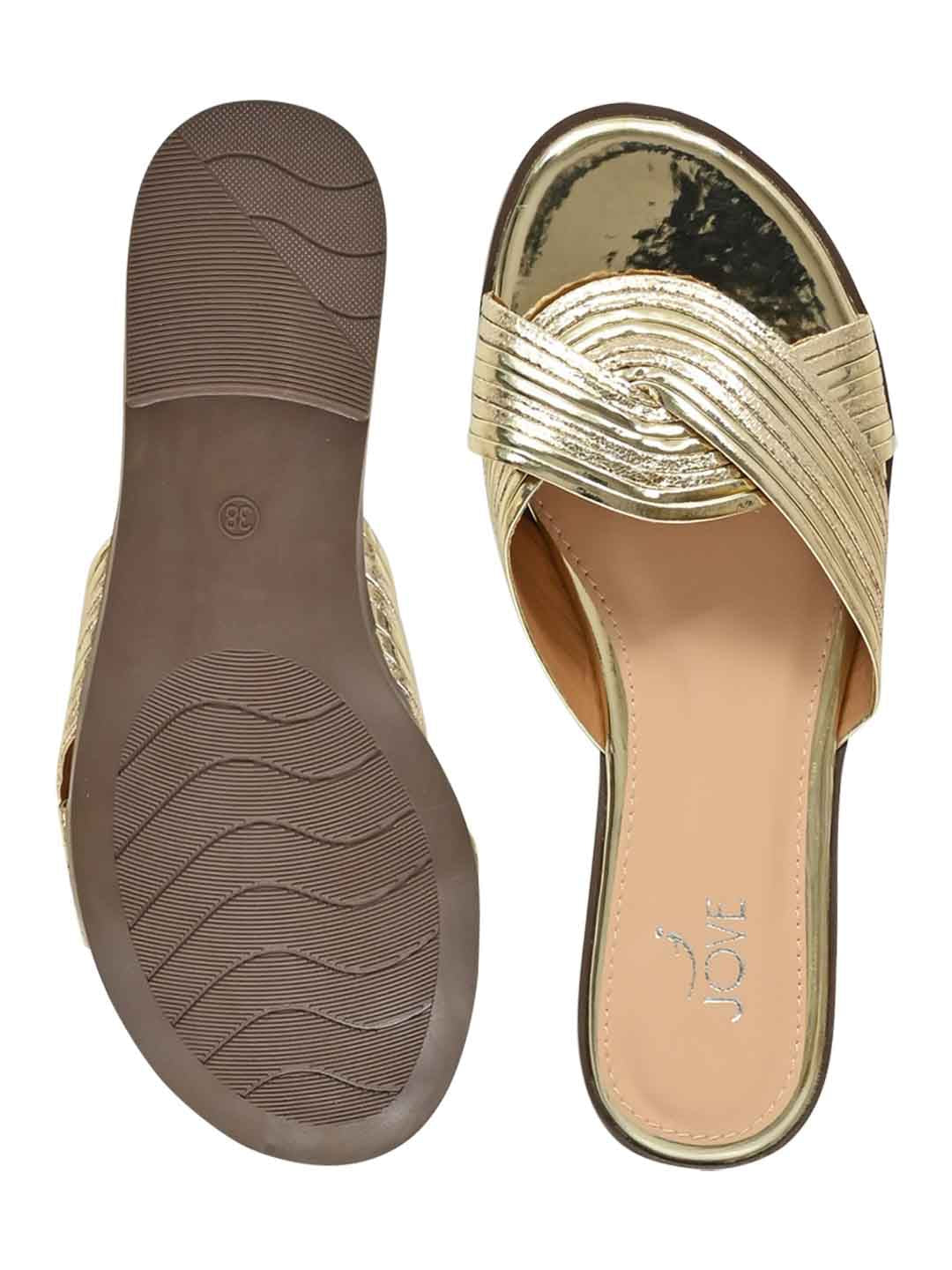 Women Golden Metallic Open Toe Flats