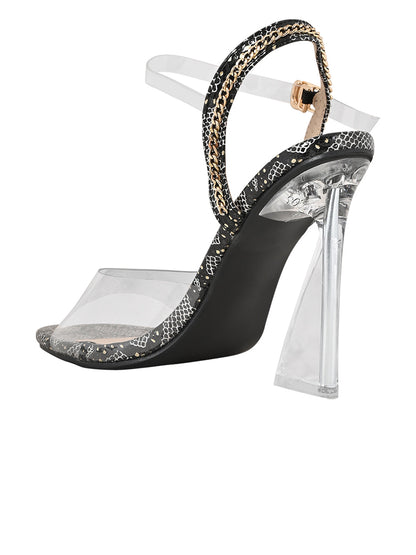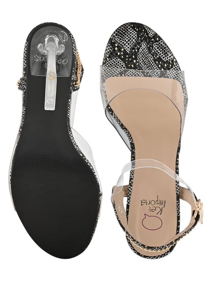 Women Black Animal Print Sandals