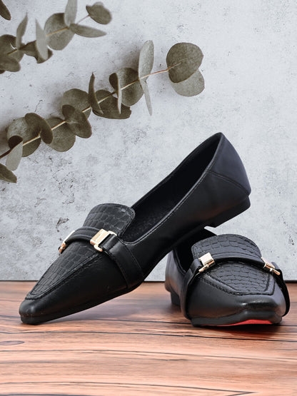 Women Black Animal Print Loafers