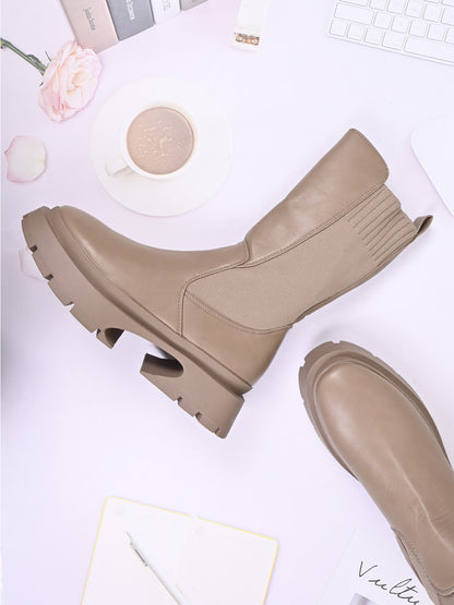 Women Khaki Solid Mid-Top Boots