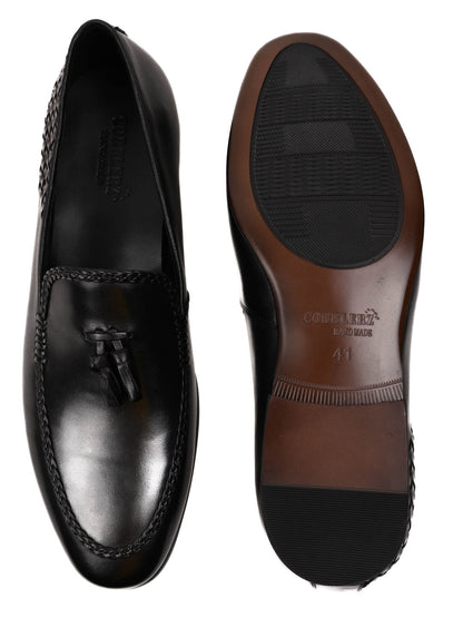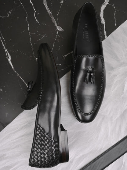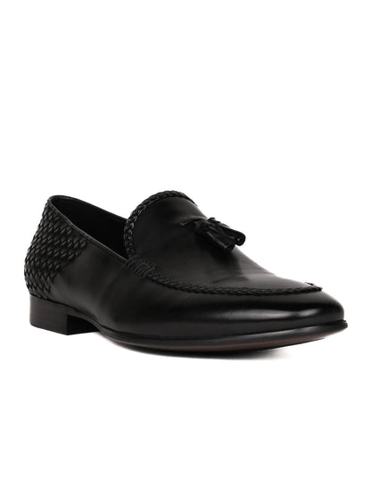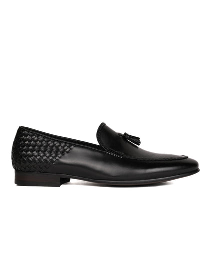 Men Black Woven Design Loafers