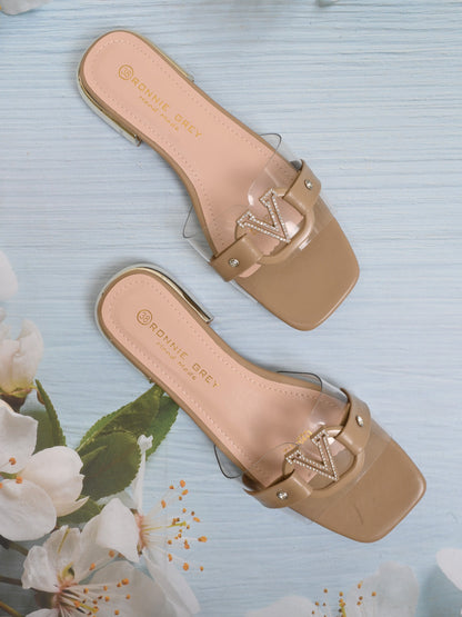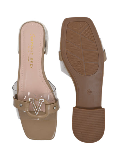 Women Khaki Solid Open Toe Flats