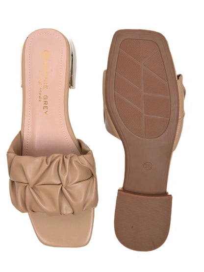 Women Khaki Solid Open Toe Flats