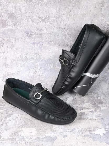 Men Black Perforated Driving Shoes