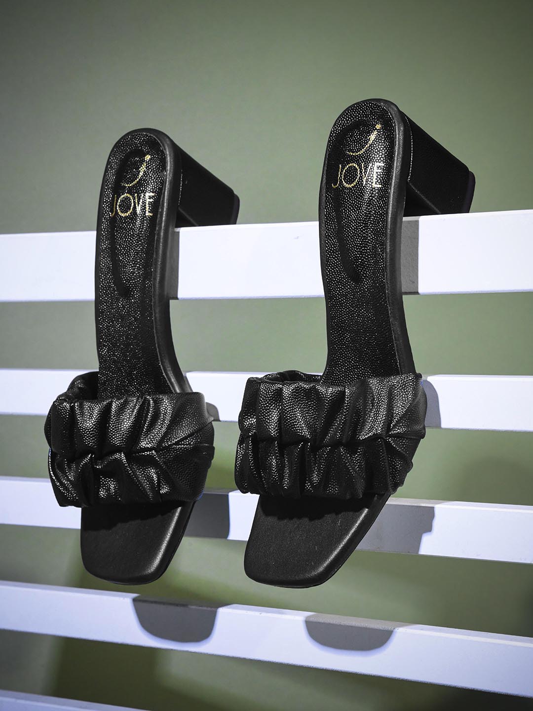 Women Black Solid Ruched Sandals