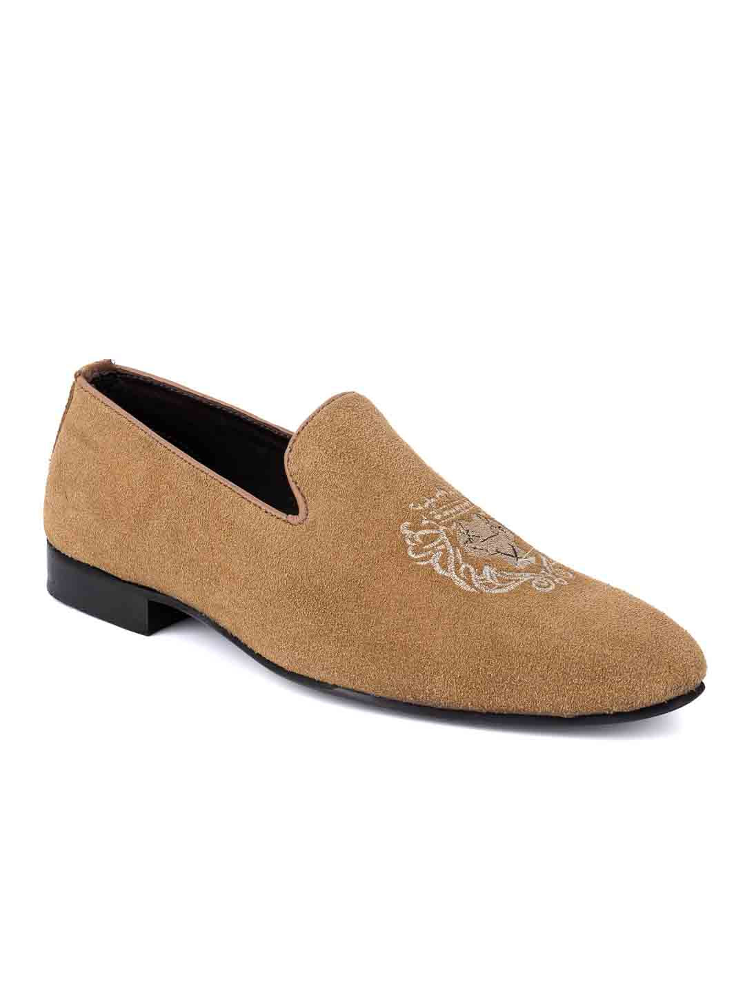 Men Brown Embroidered Loafers