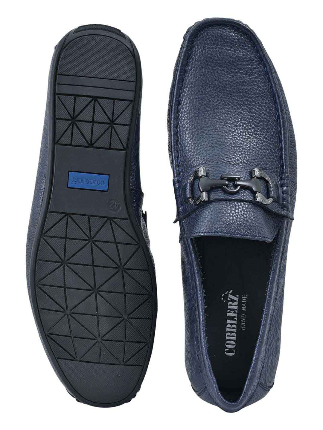 • Show off your awesome sense of style with a pair of trendy COBBLERZ navy blue loafers. These shoes can be teamed with slim jeans and a trendy button-down shirt when you're meeting your gang for dinner and drinks.