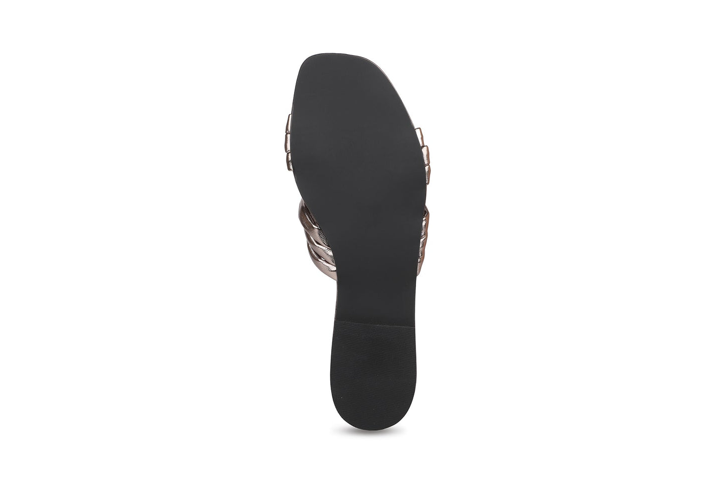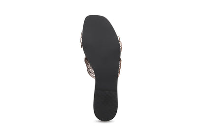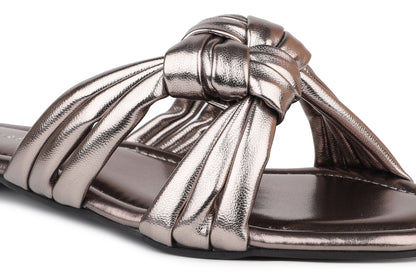 Women Silver Metallic Woven Design Open Toe Flats