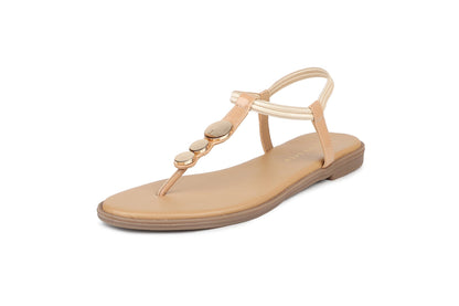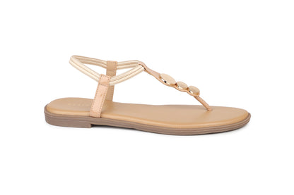 Women Beige Solid T-Strap Flats
