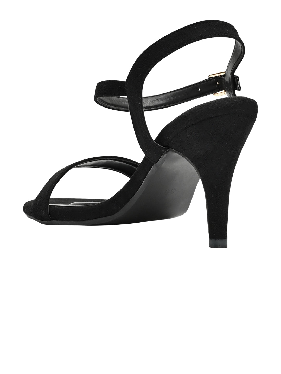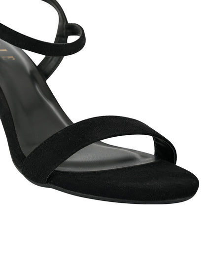 Women Black Solid Ankle Loop Sandals