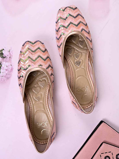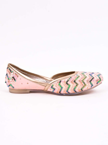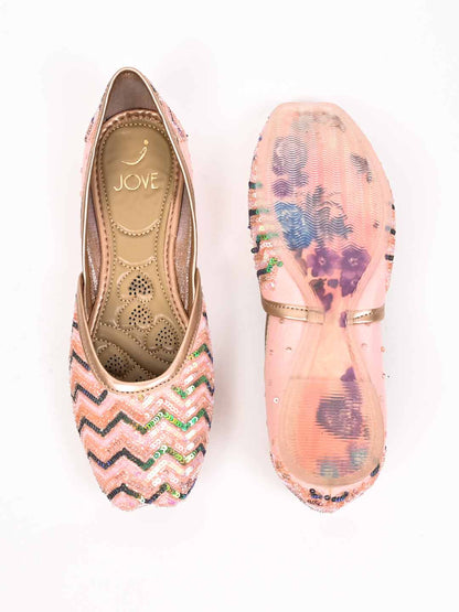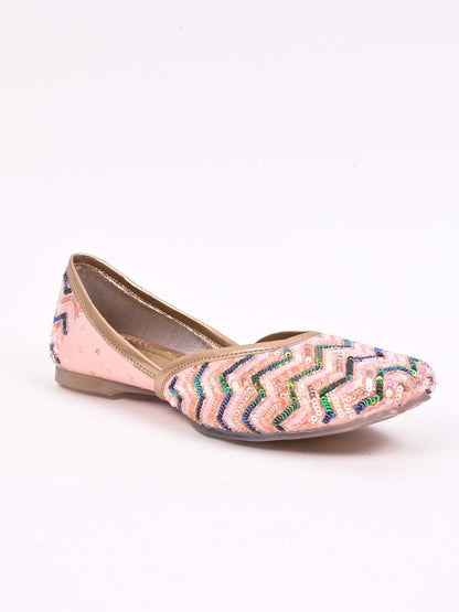 Women Pink Embellished Mojaris
