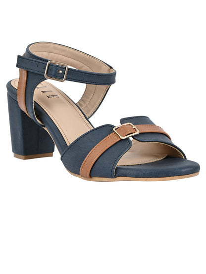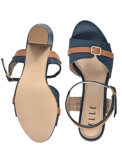 Women Navy Blue Colourblocked Ankle Loop Sandals
