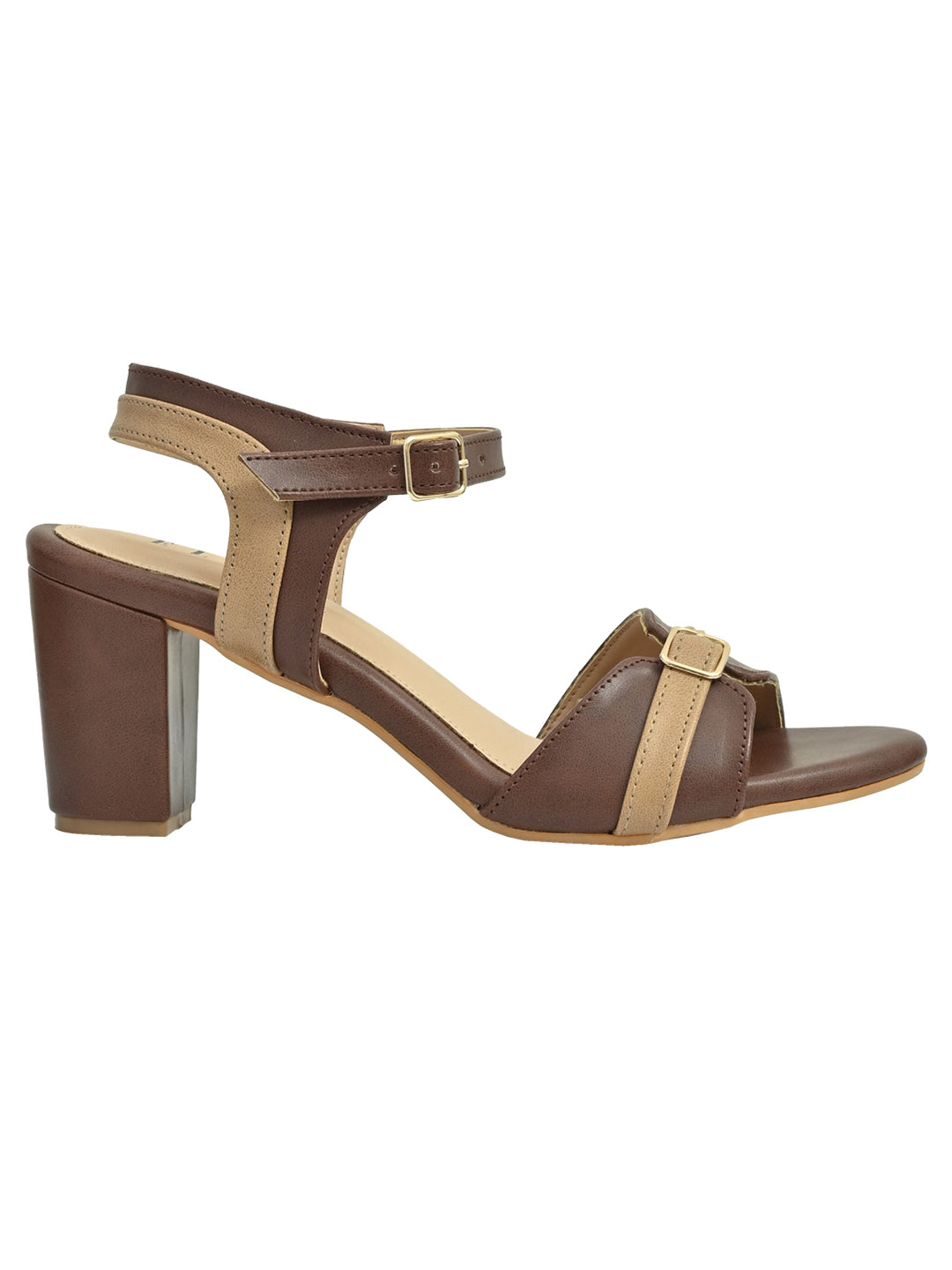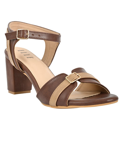 Women Brown Colourblocked Ankle Loop Sandals