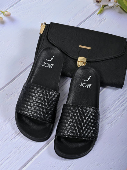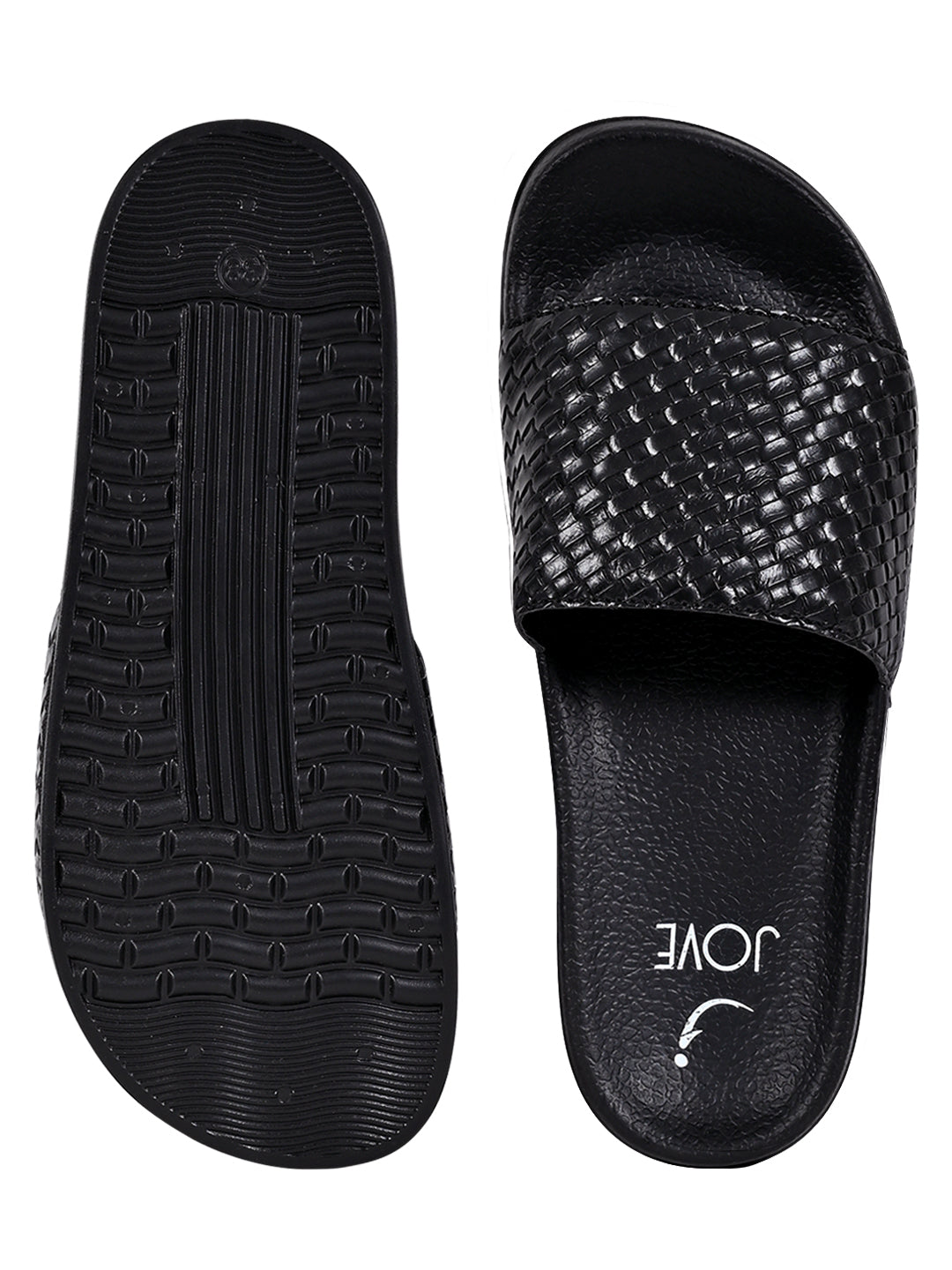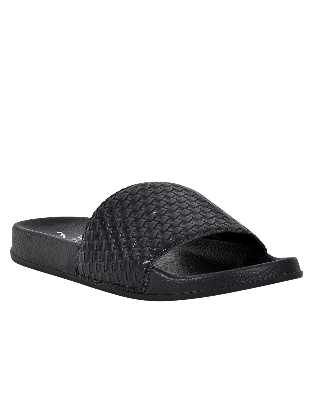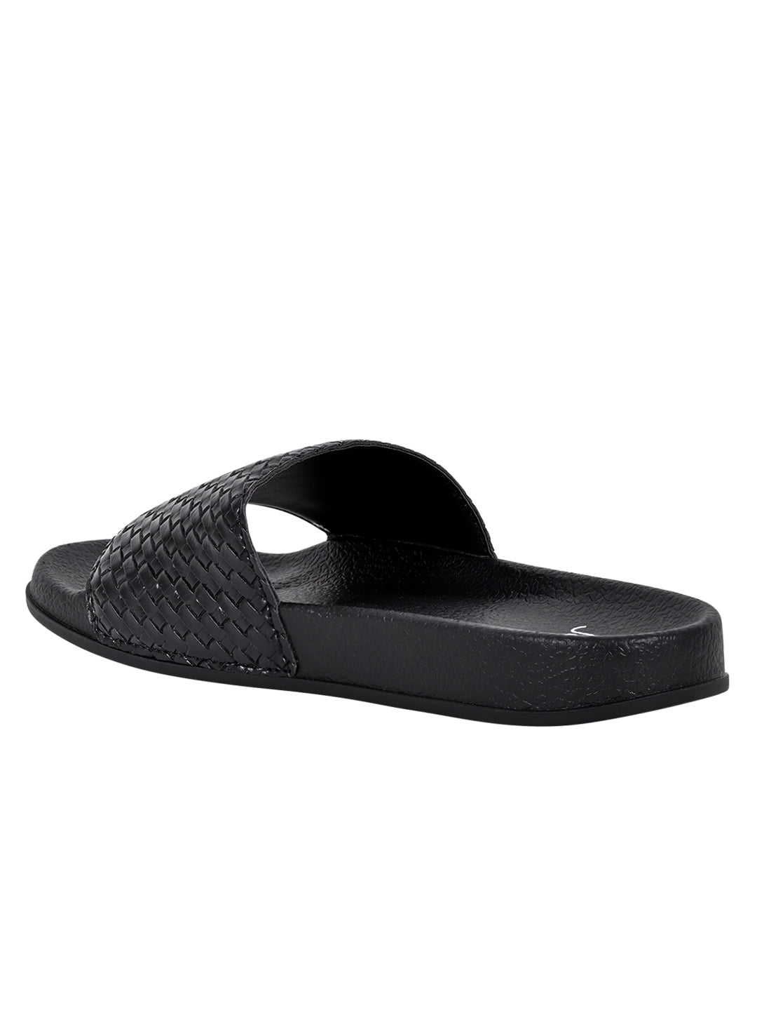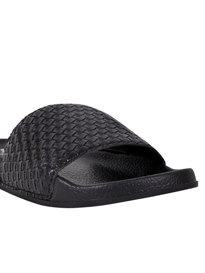 Women Black Basket Weave Textured Slides