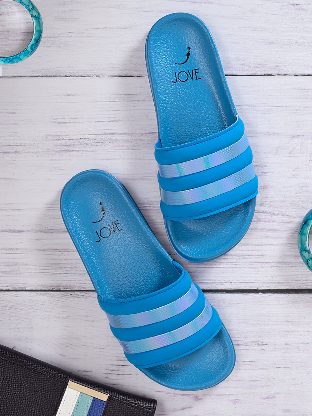 • These pretty slides from jove are perfect for poolside. Team it with denim shorts and a crop top for a cool attire.
