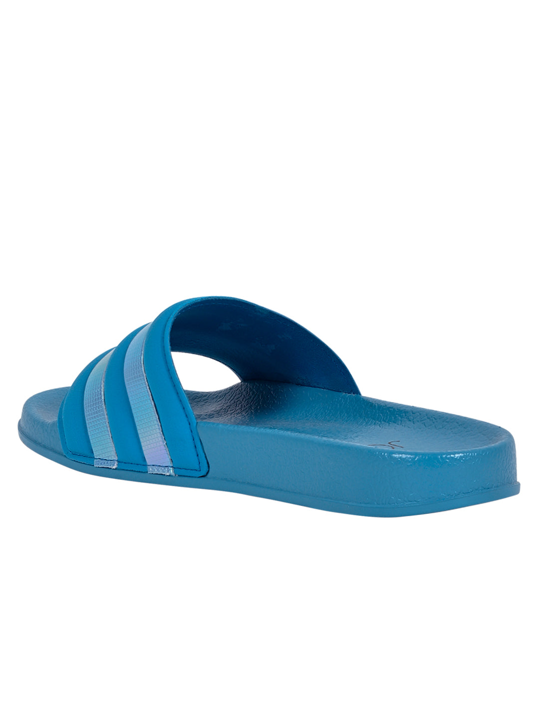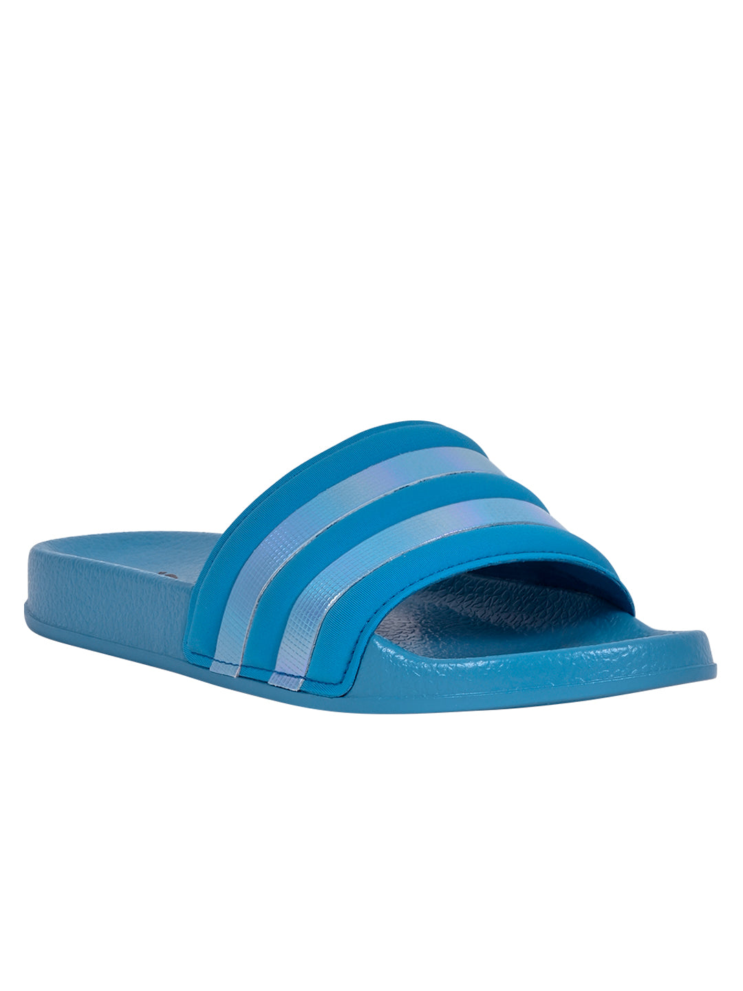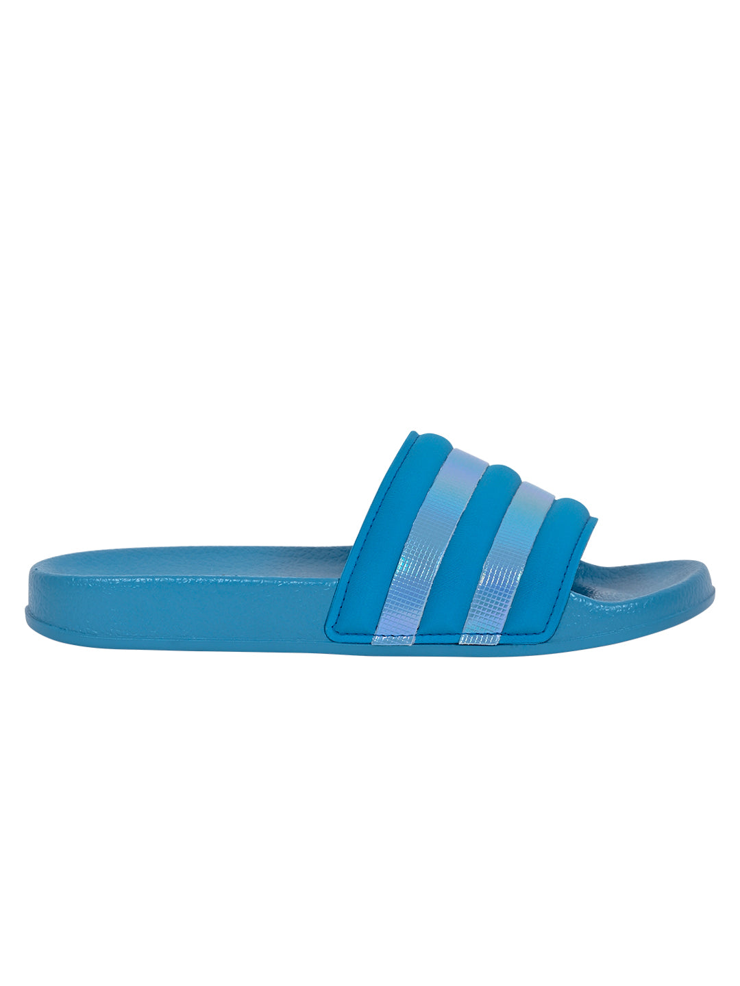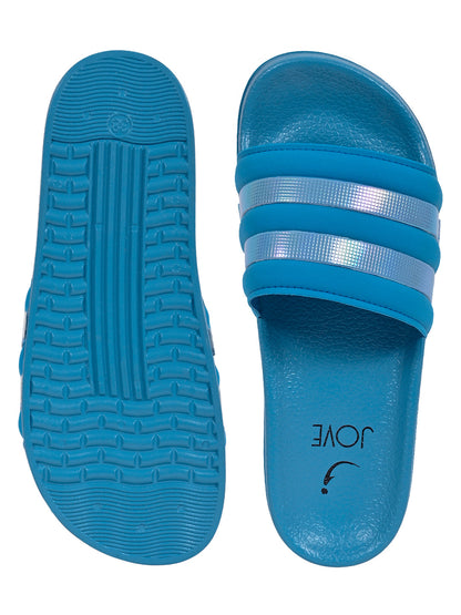 Women Aqua Striped Slides