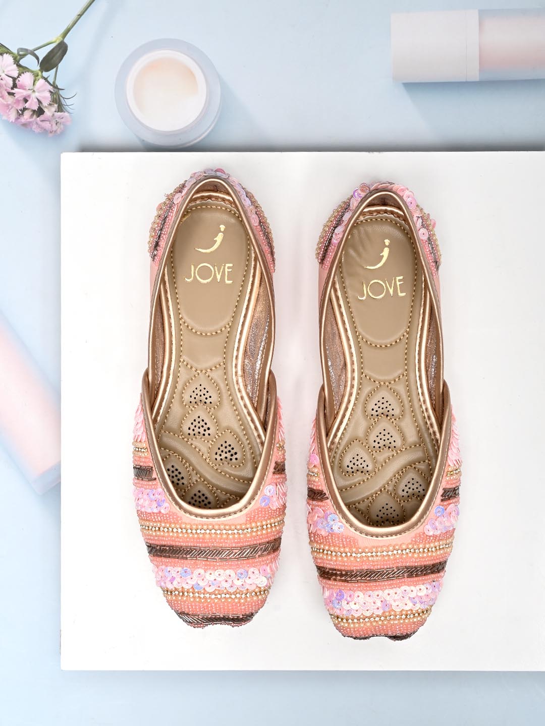 • Set the trend with these adorable Mojaris from Jove. Team these Mojaris with a kurta and leggings to create a modish ethnic look.