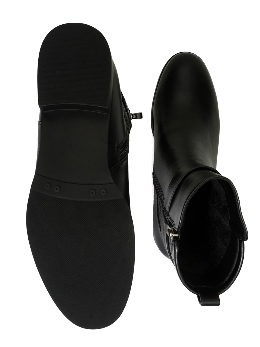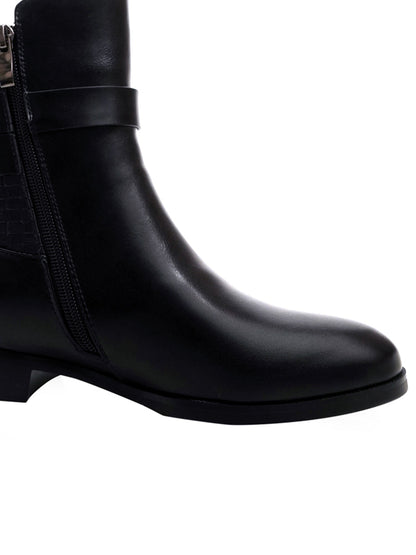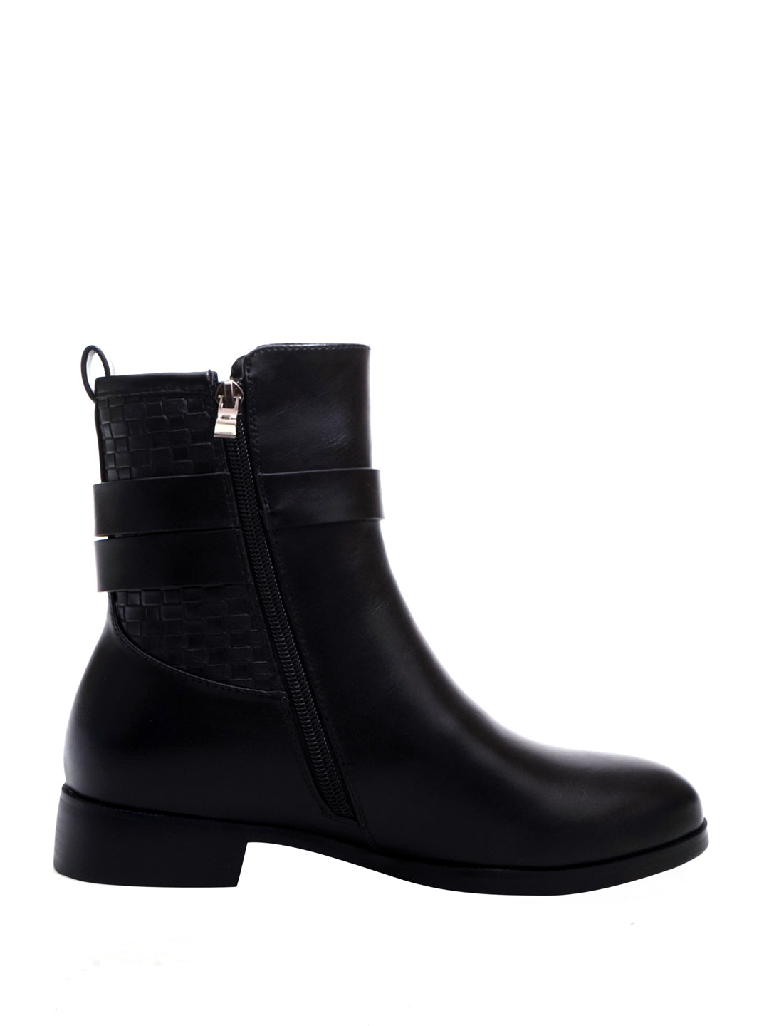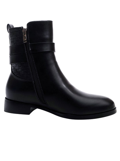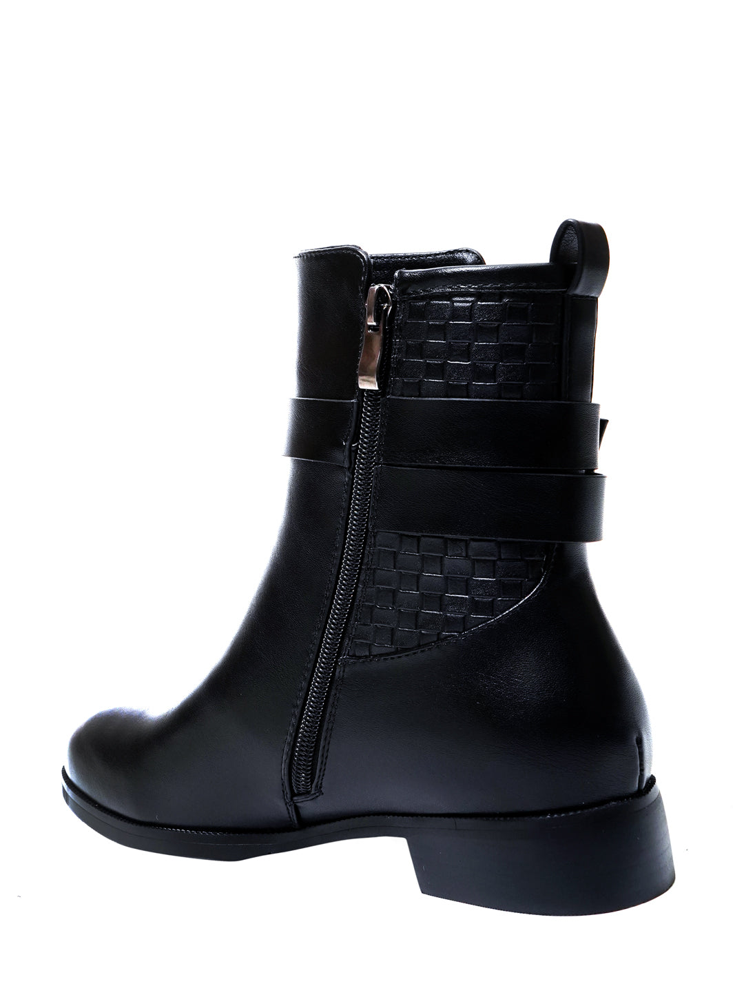 Women Black Basket Weave Textured Boots