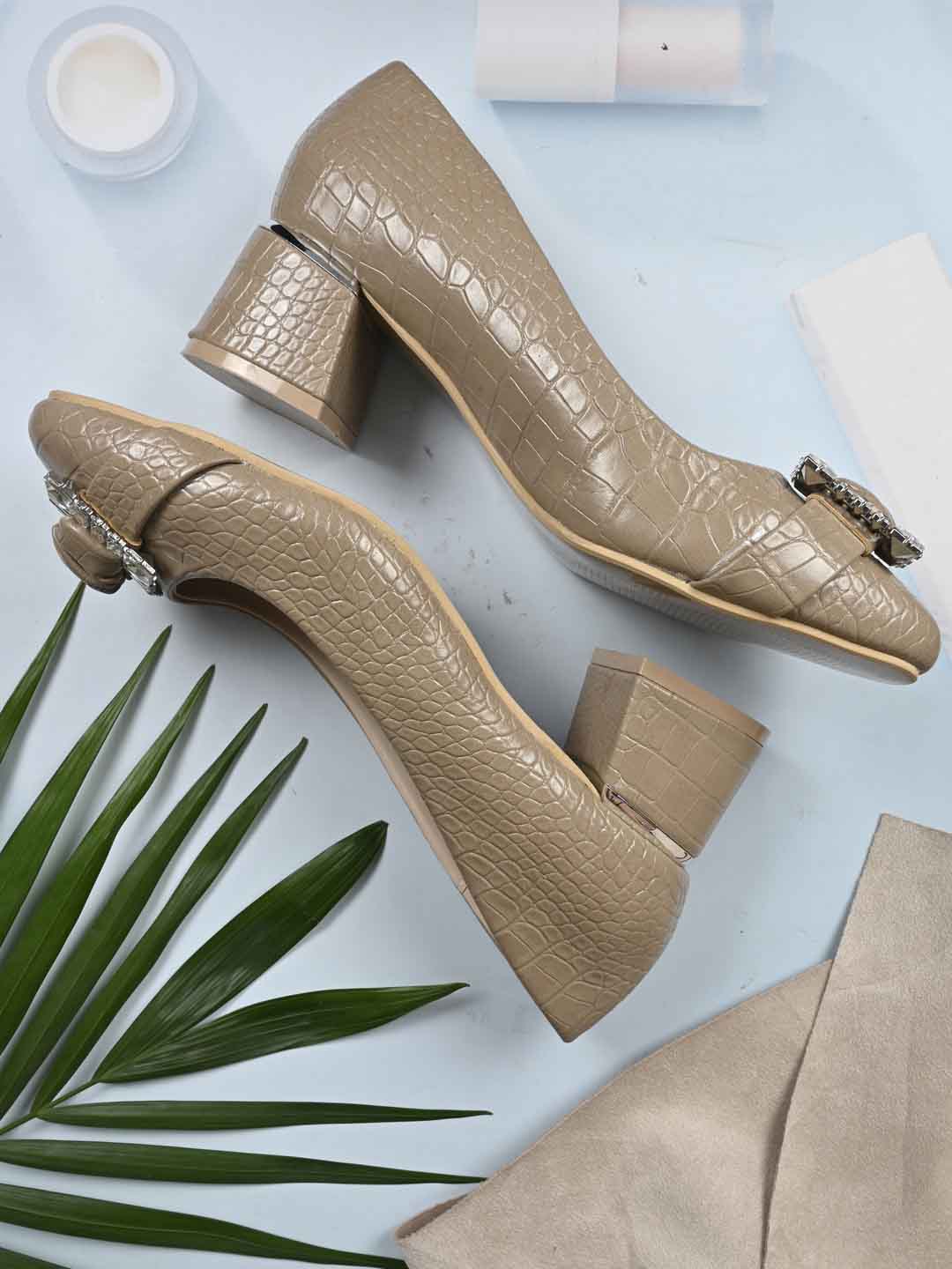 Women Khaki Animal Print Pumps