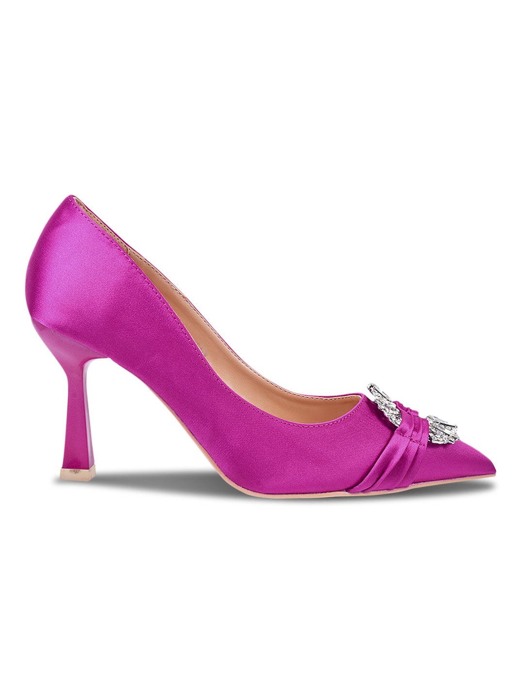 Women Fuchsia Textured Embellished Pumps