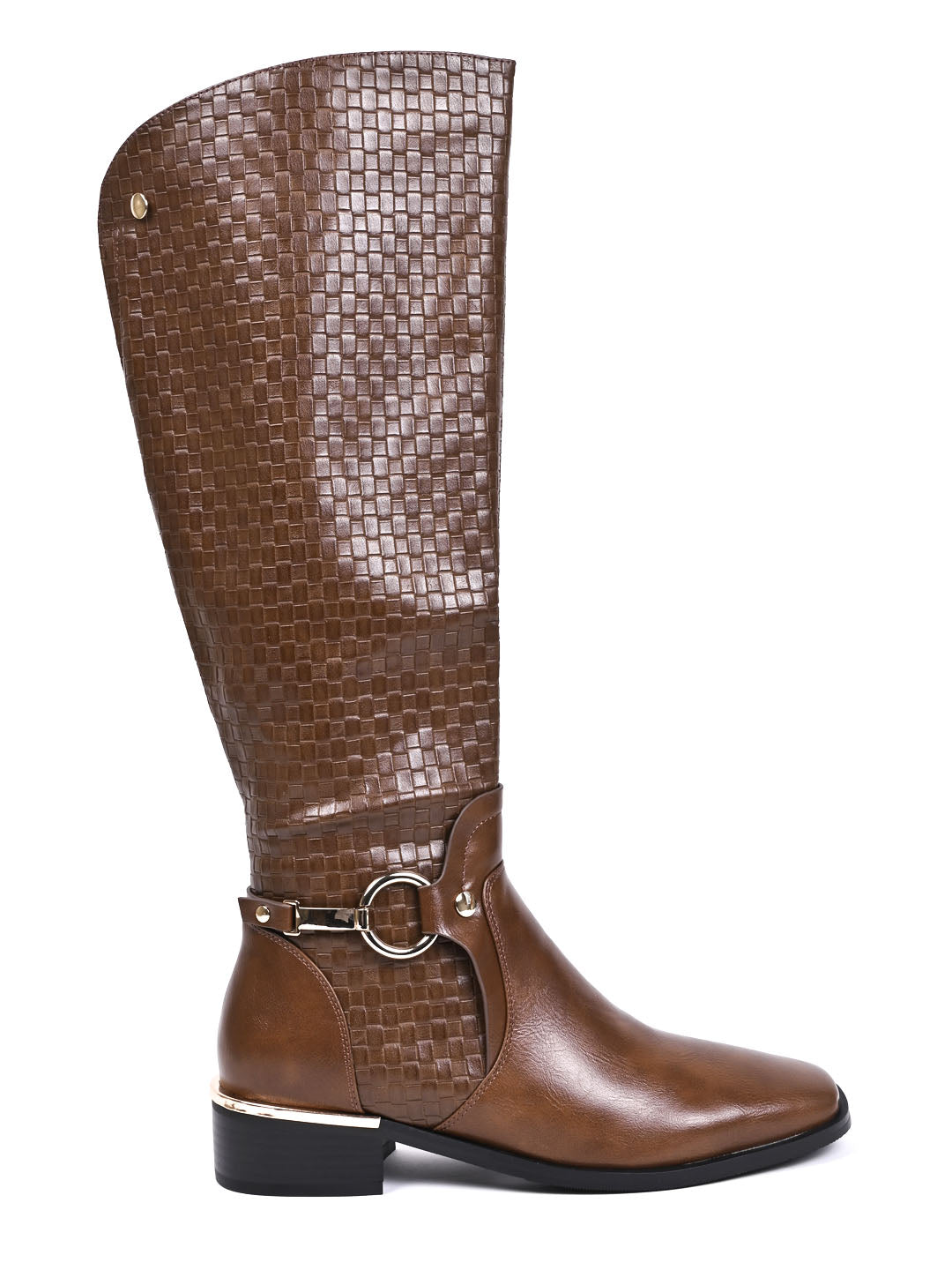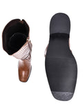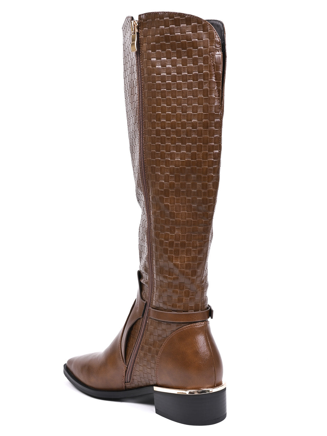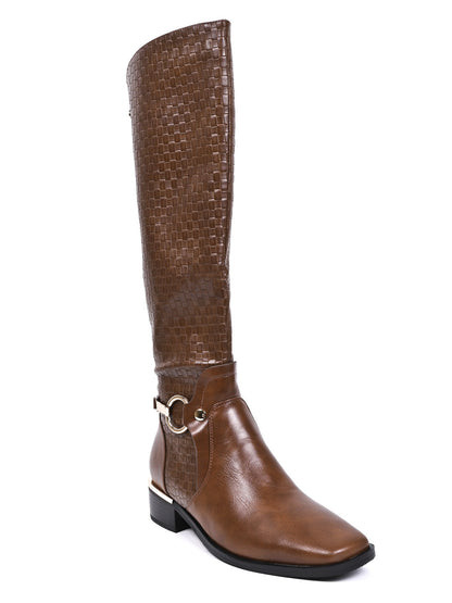 Women Tan Basket Weave Textured High-Top Boots