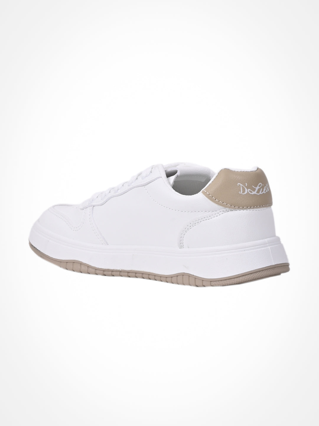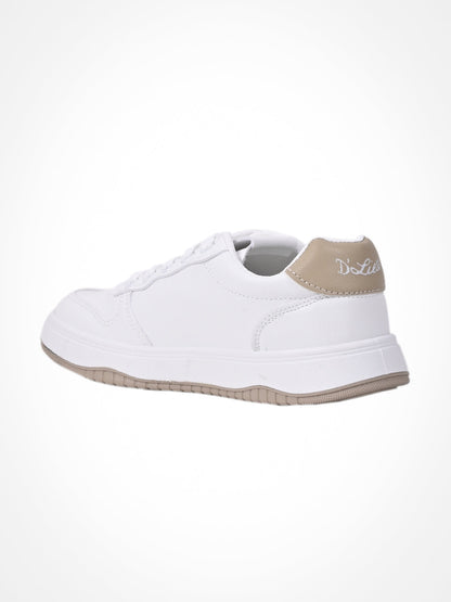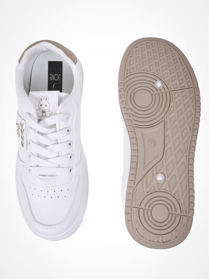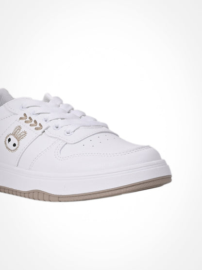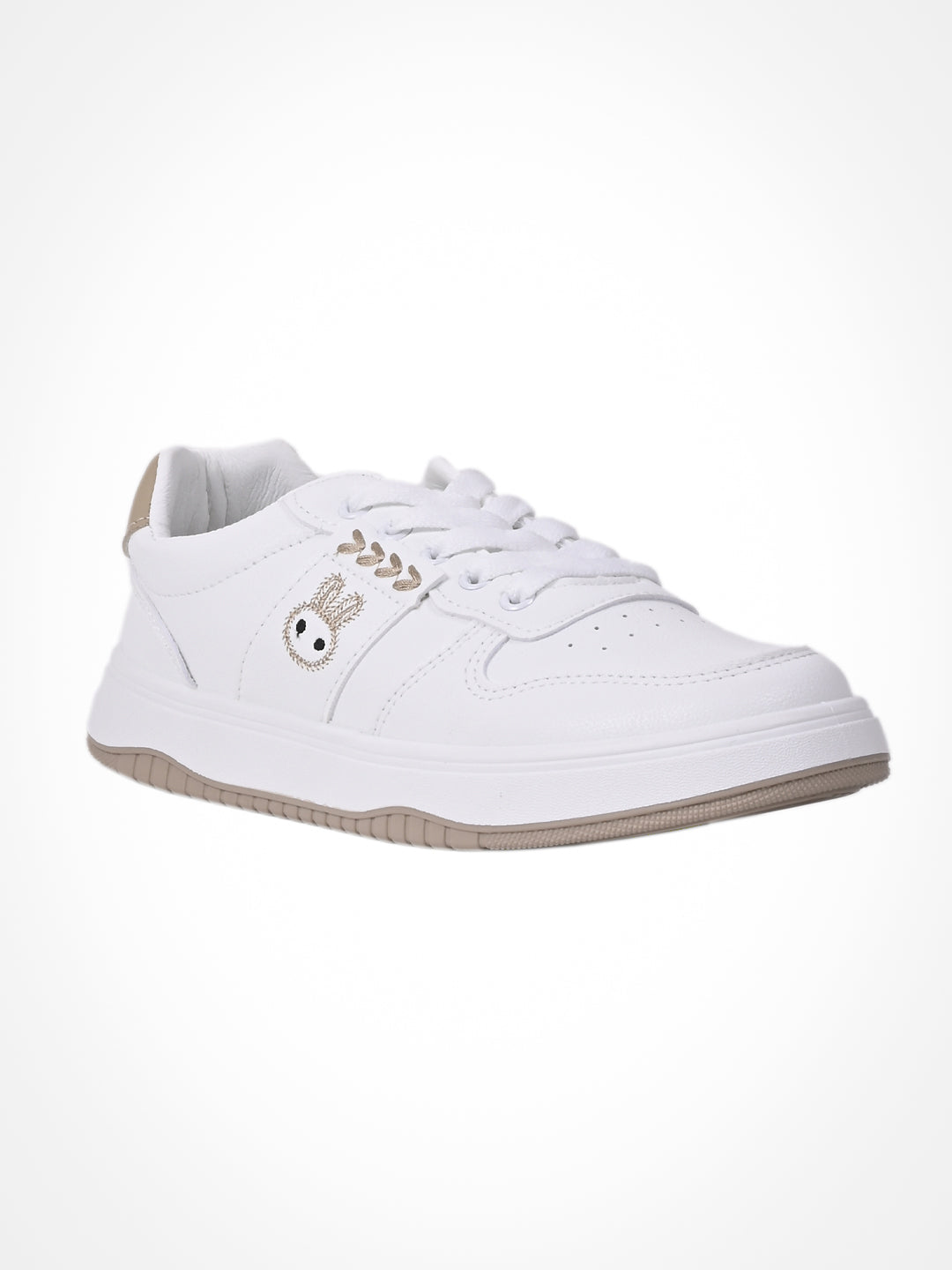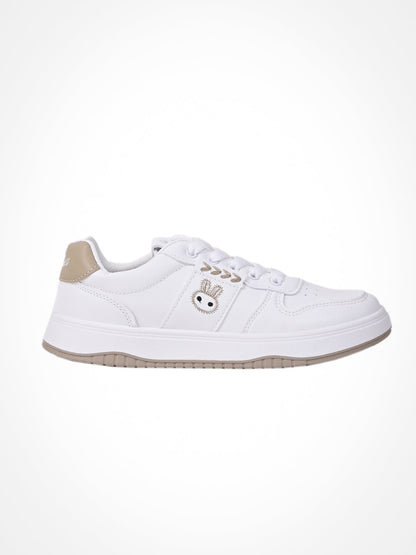 Women White & Khaki Embroidered Sneakers