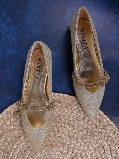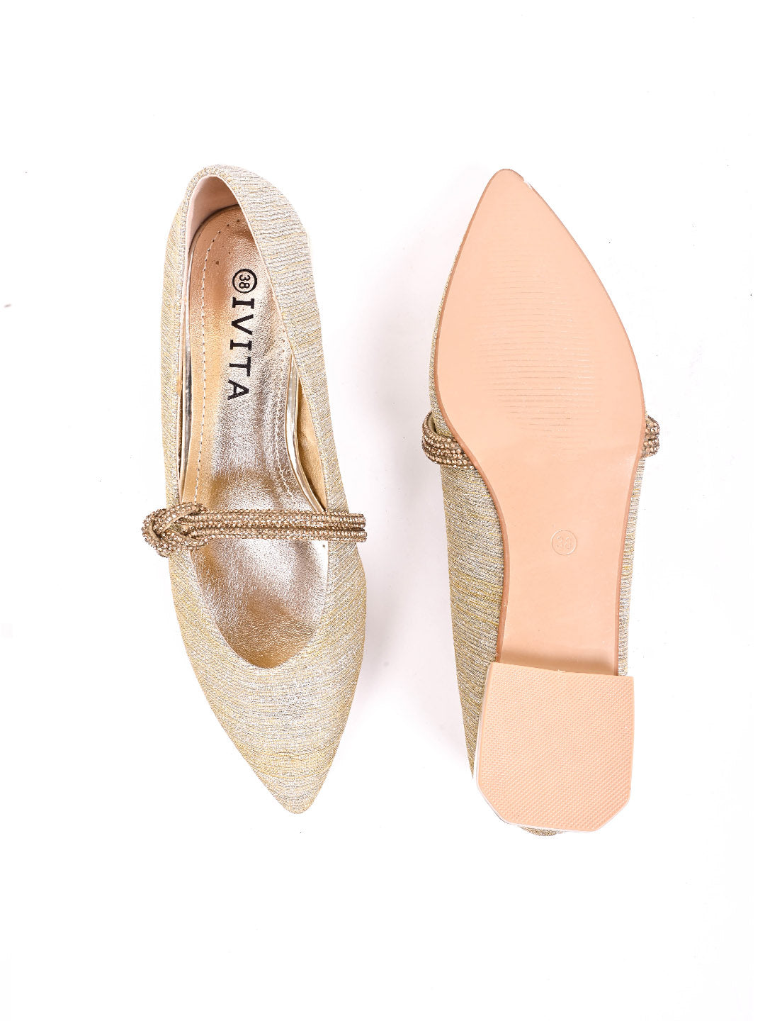 Women Gold Embellished Ballerinas