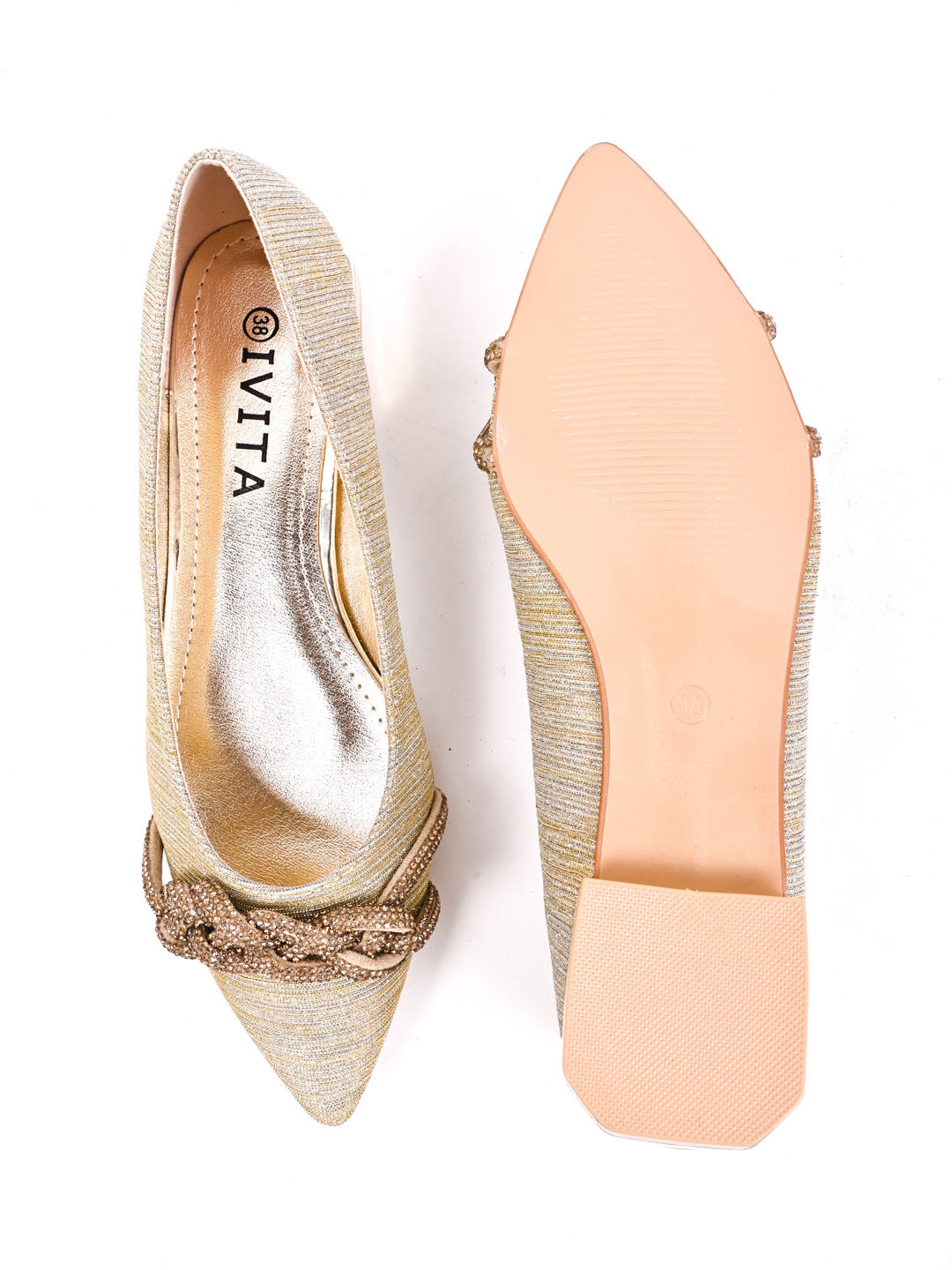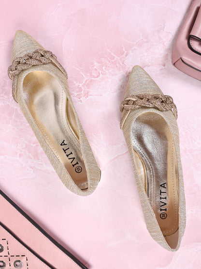 Women Gold Embellished Ballerinas