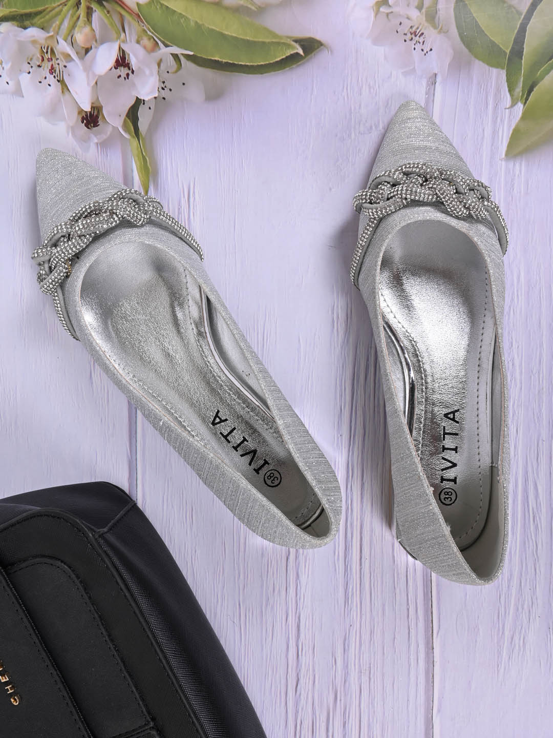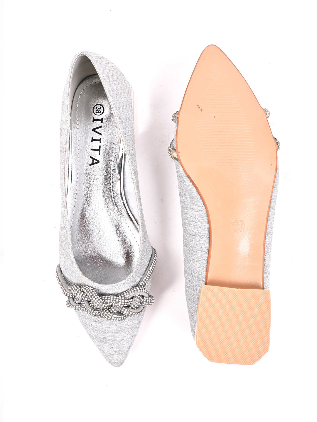 Women Silver Embellished Ballerinas