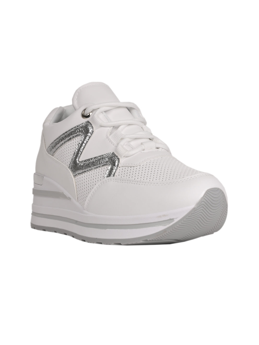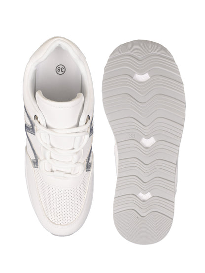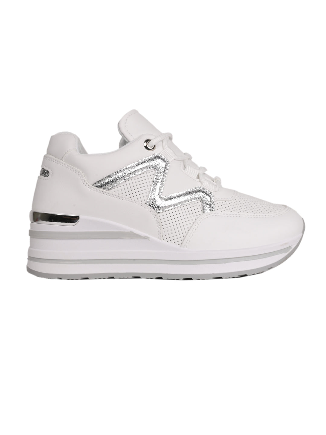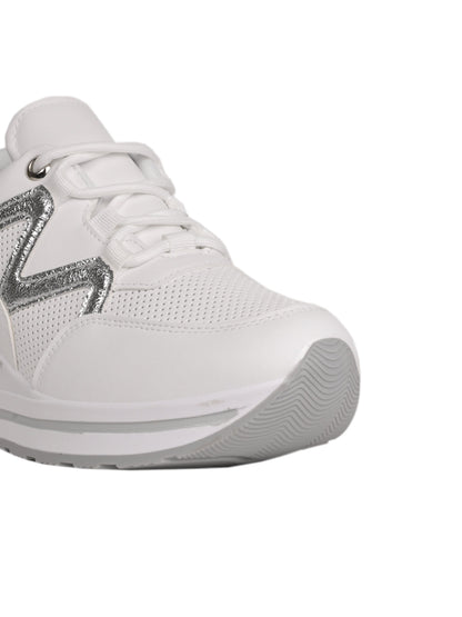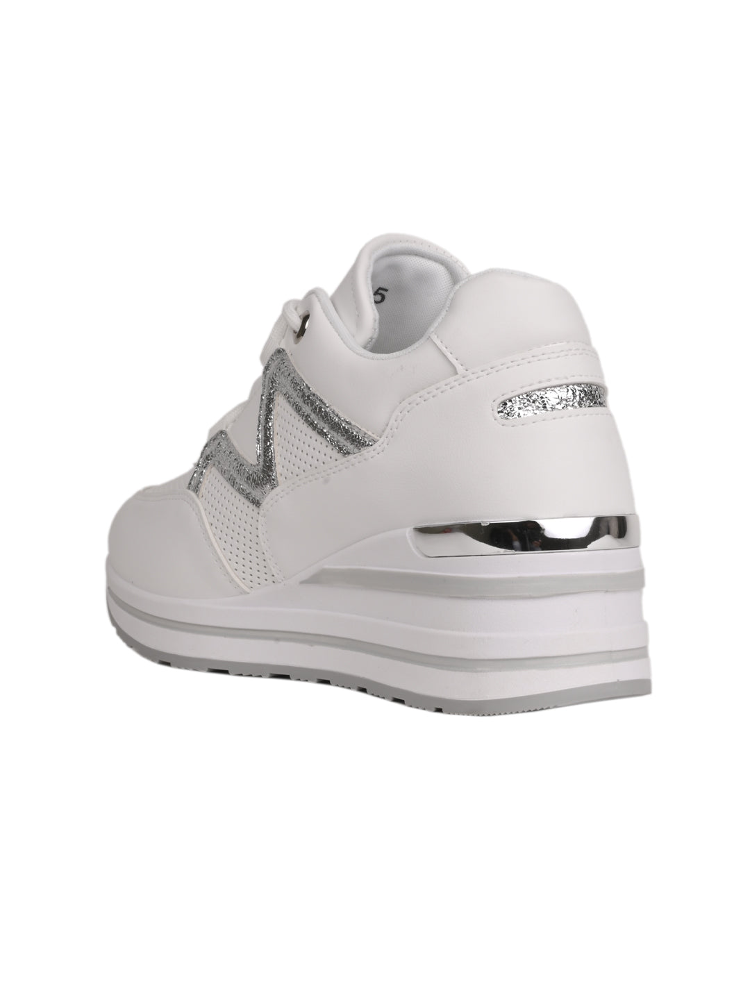 Women White Metallic Wedge Heel Sneakers