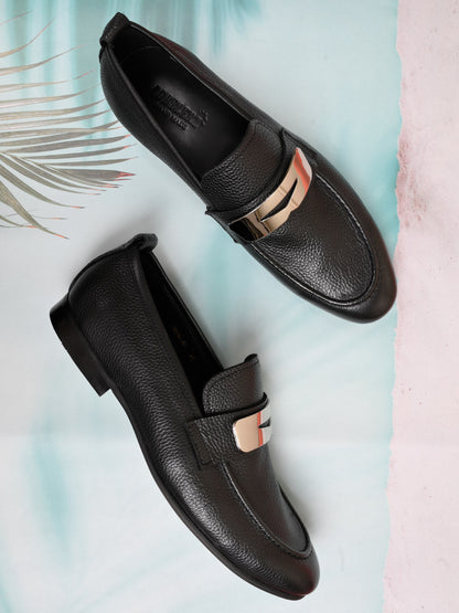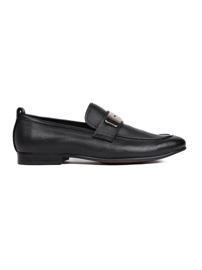 Men Black Textured Loafers