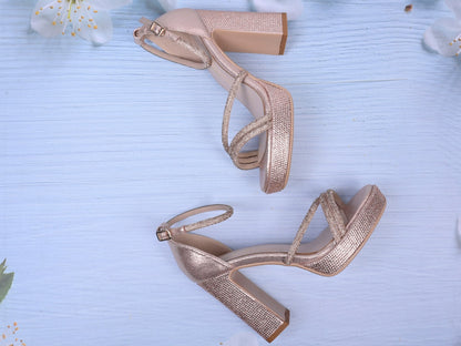 Women Champagne Embellished Sandals