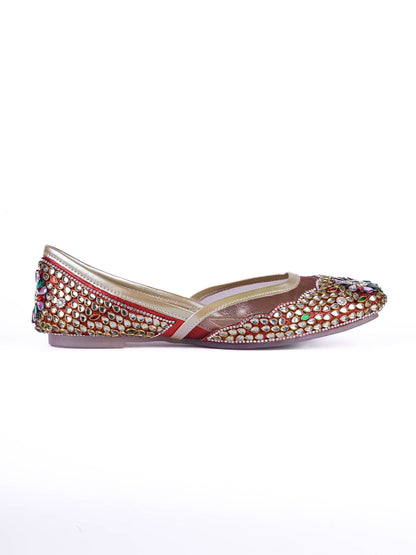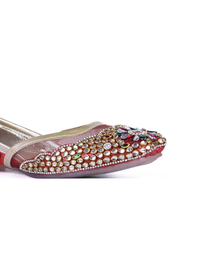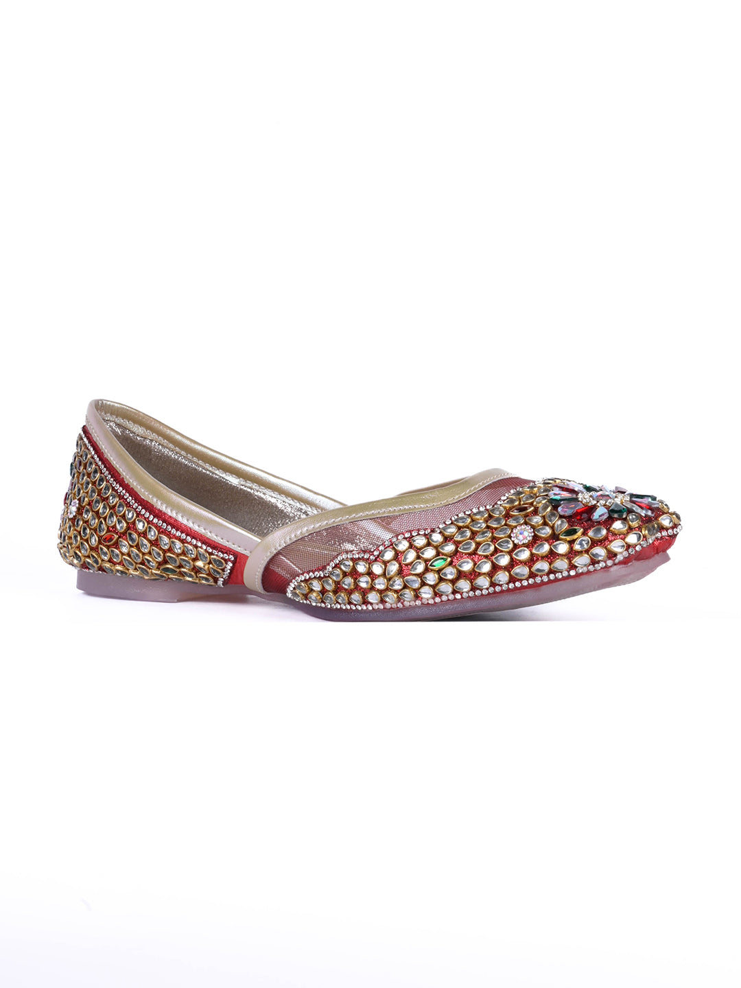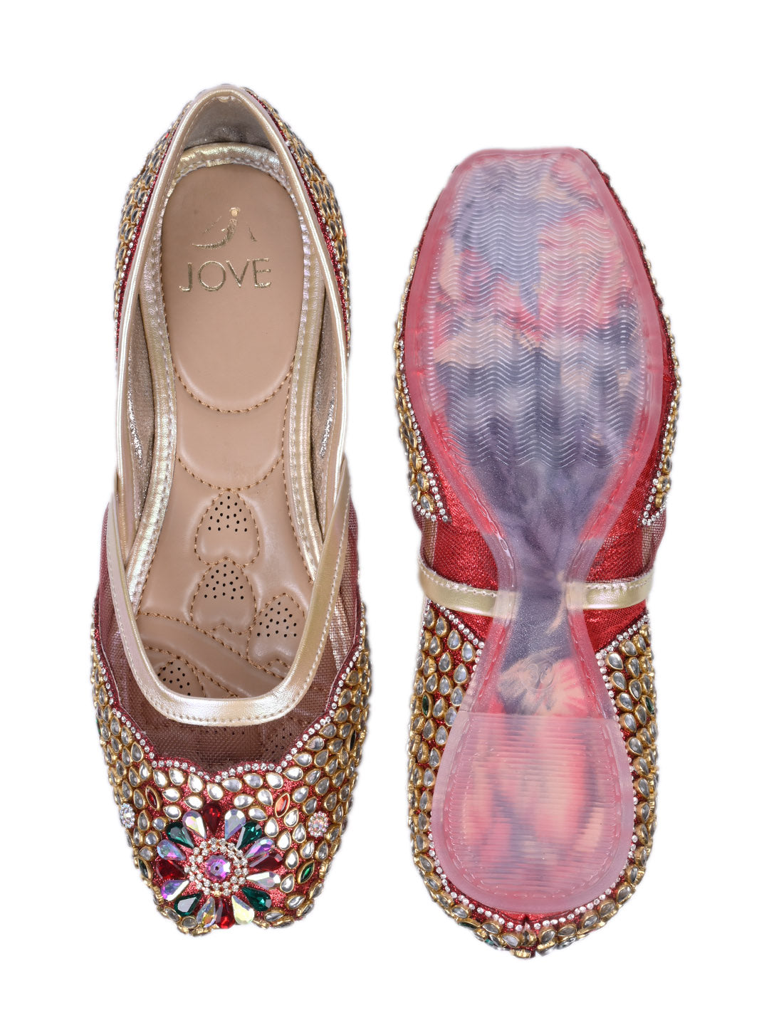 Jove Ethnic Embellished Mojaris add a touch of traditional charm to your look. Pair them with a flowy kurta set or a contemporary fusion outfit for a graceful, standout finish.